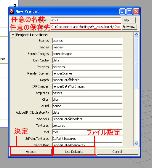 3.[Use Defaults]作るファイルの種類(そのままで良いと思います)