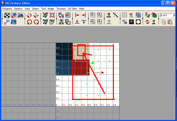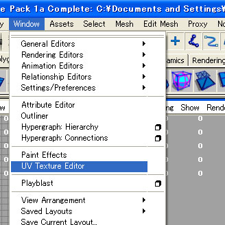 UV Testure Editorウィンドウ内で右クリック長押し、出るメニューの右で[UV]を選択