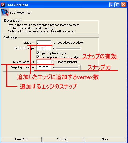 印部分に[Split Polygon Tool]等でスナップ用のvertexを作ります。