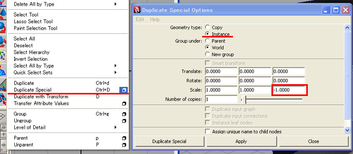 [メインメニュー]→[Edit]→[Duplicate Special]
