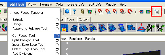 [メインメニュー]→[Edit Mesh]→[Split Polygon Tool]