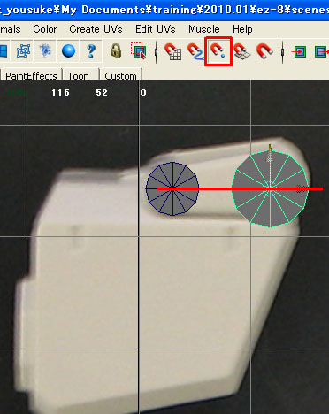 シリンダーの軸が揃っていない場合は[Vertexスナップ]で軸をあわせましょう。
