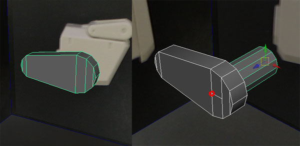 肩のディティールパーツの一個を伸ばして[booleans]用のモデルにします。