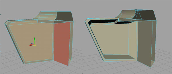 右側の内側を凹ますのは[Extrude]を使います難しければ後々解説しますので後回しで良いです
